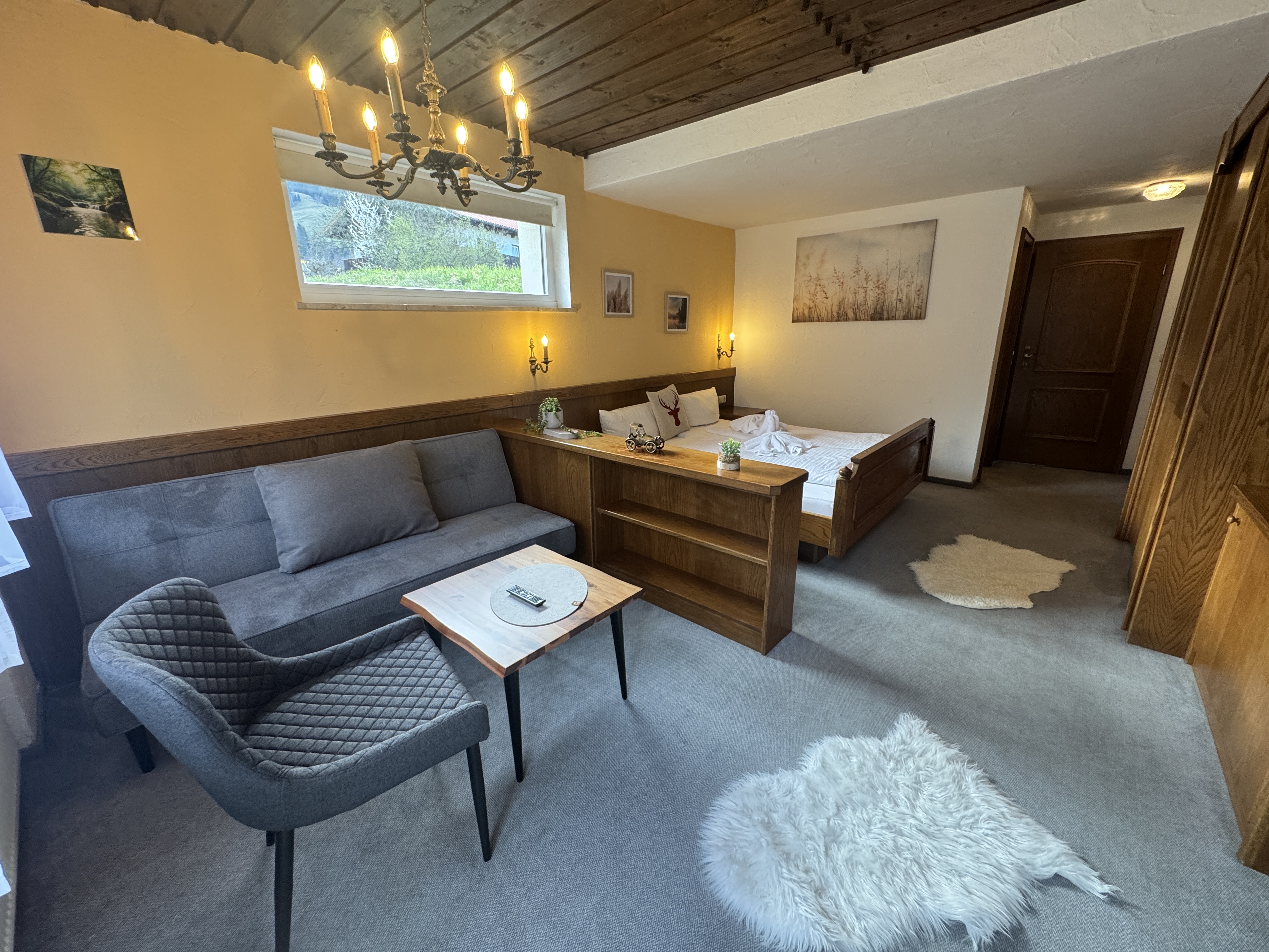 - Doppelbett + Schlafsofa